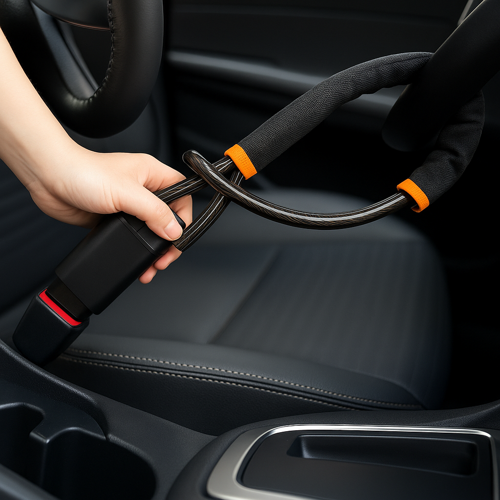 Under 3 seconds. Just loop the cable through your steering wheel, clip into the buckle, and you’re protected.